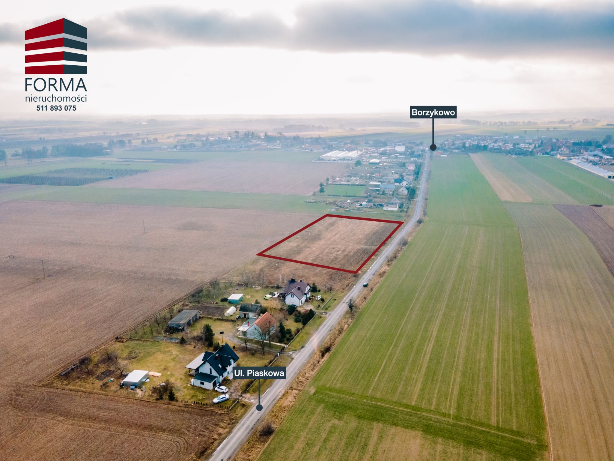 Polecam ofertę działki budowlanej o pow. 8000 m2 w miejscowości Borzykowo, Gmina Kołaczkowo, powiat Wrzesiński przy ul. Piaskowej.