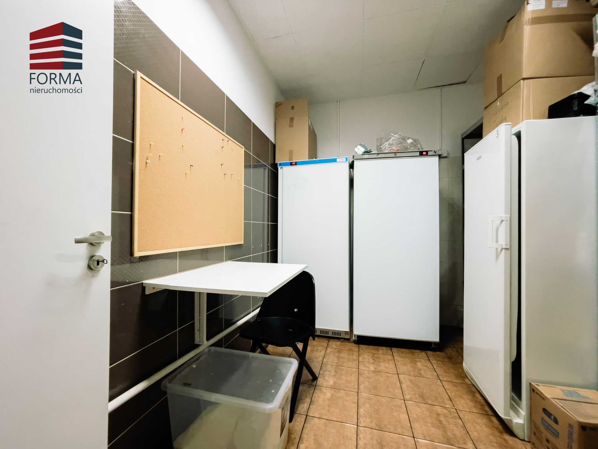 – magazyn z regałami i lodówkami