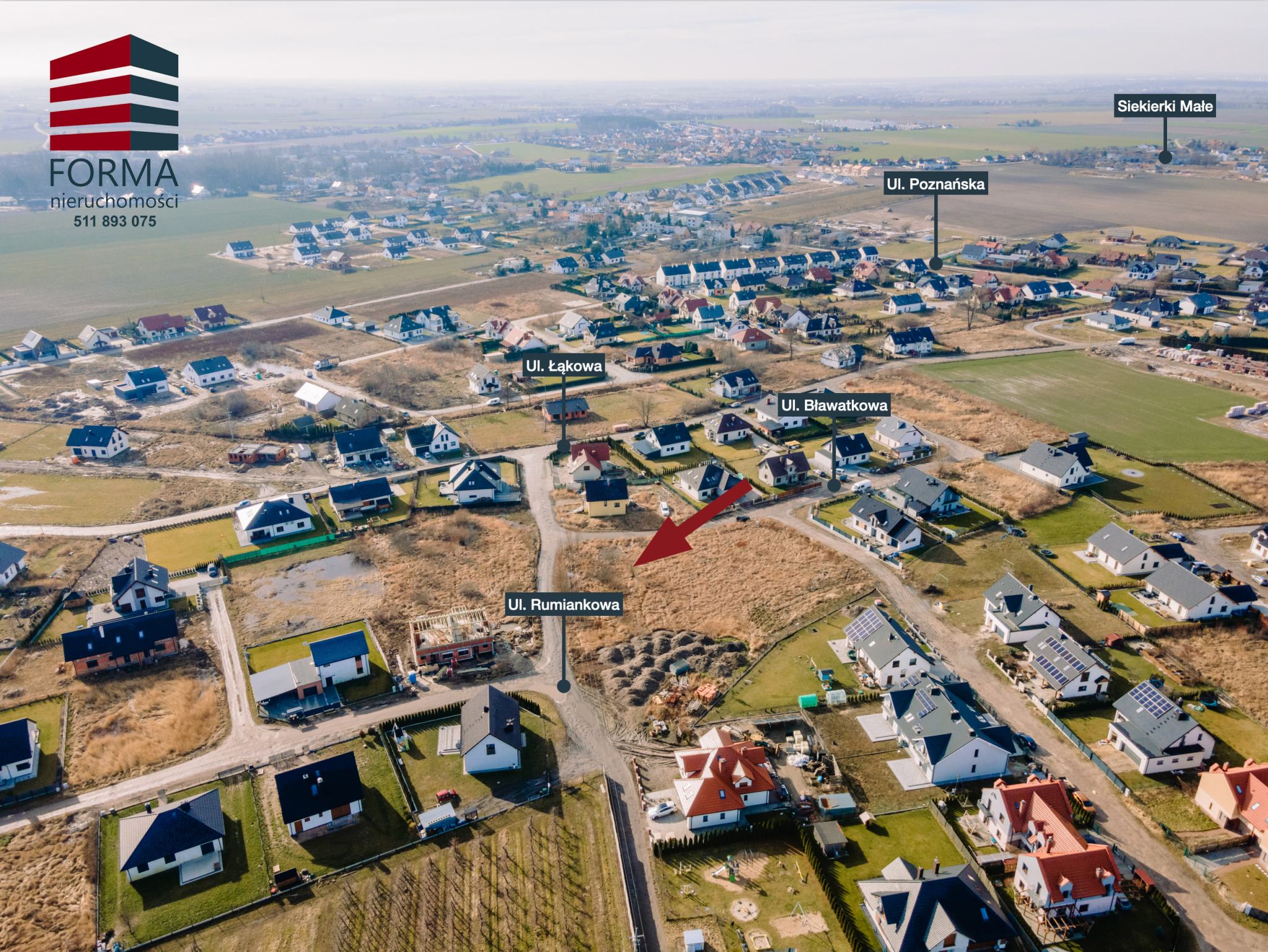 Polecam ofertę działki budowlanej o pow. 872 m2 w miejscowości Siekierki Wielkie, Gmina Kostrzyn, powiat Poznański przy ul. Rumiankowej i Bławatkowej.