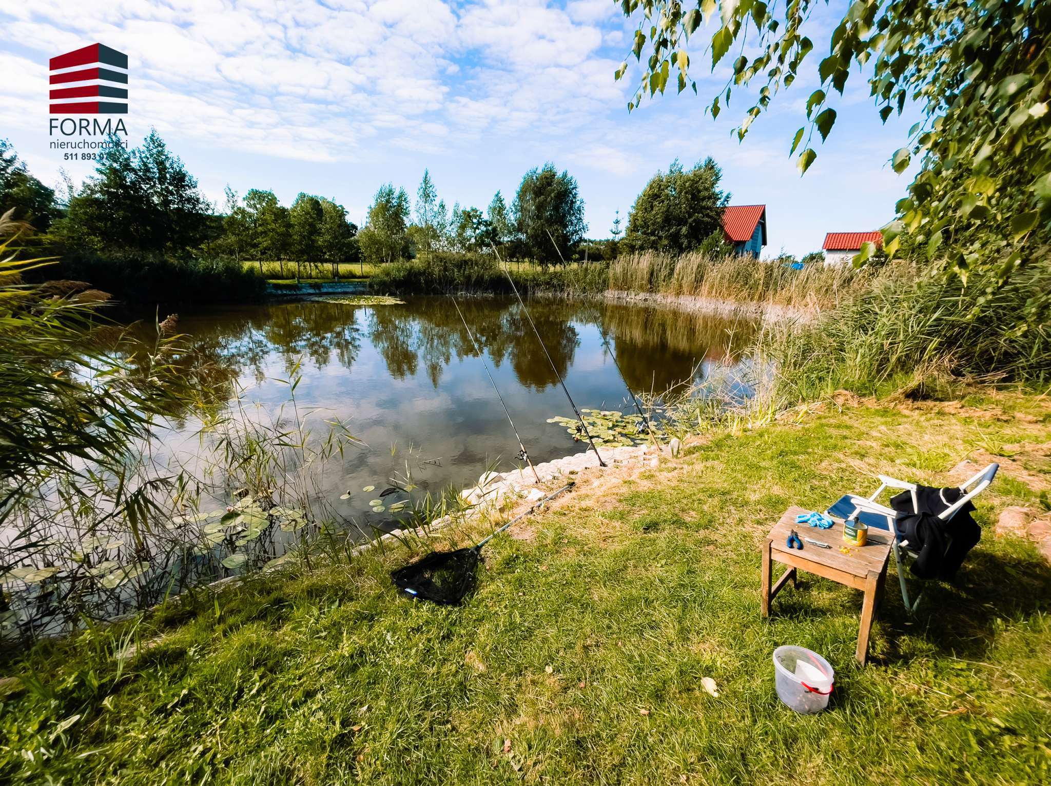 Na działce znajduję się stawek ok. 1300 m2 ( jest wydane pozwolenie na rozbudowę do ok. 2000 m2 ) w którym można złowić karpie, karasie, liny, szczupaki.