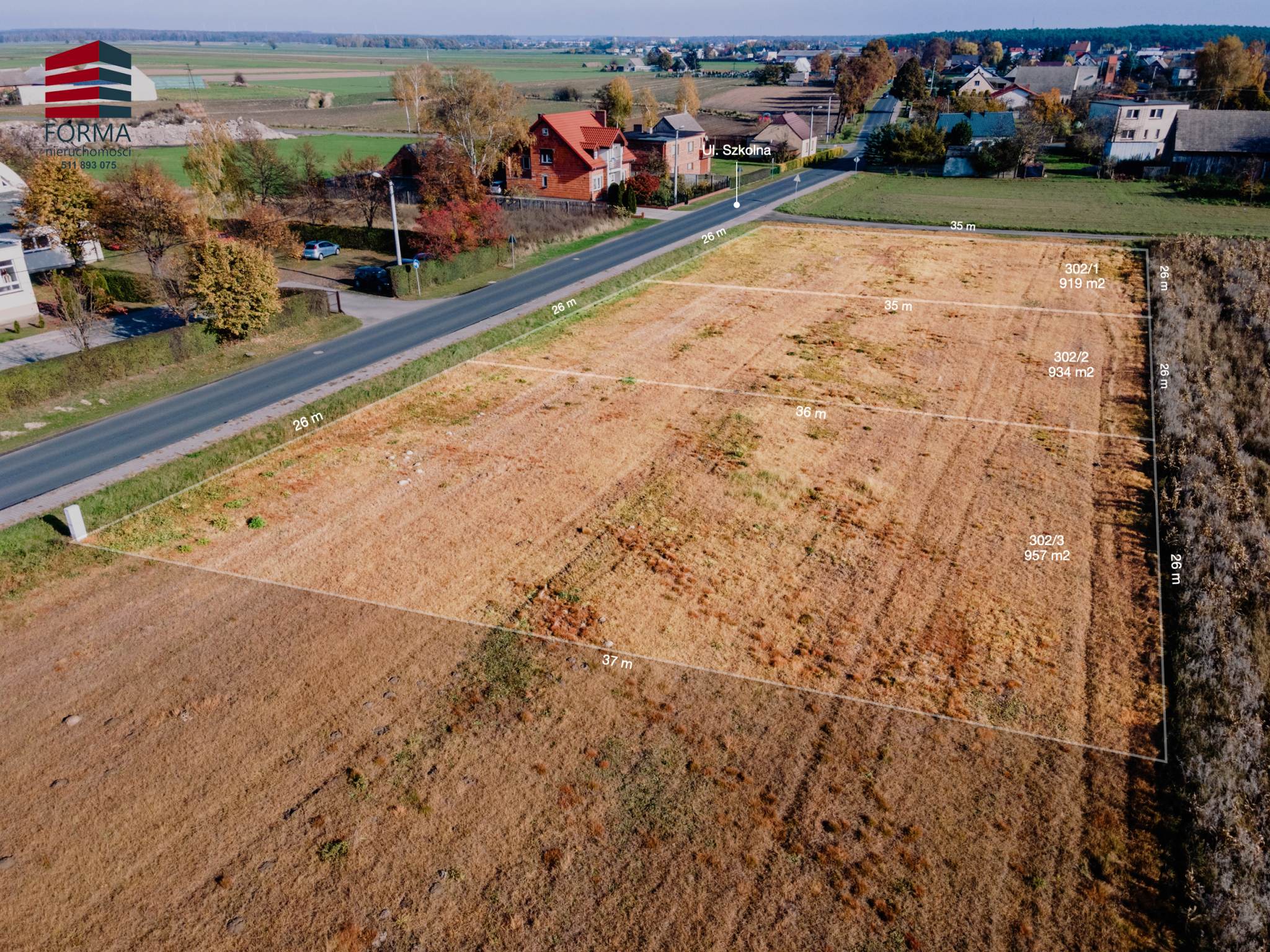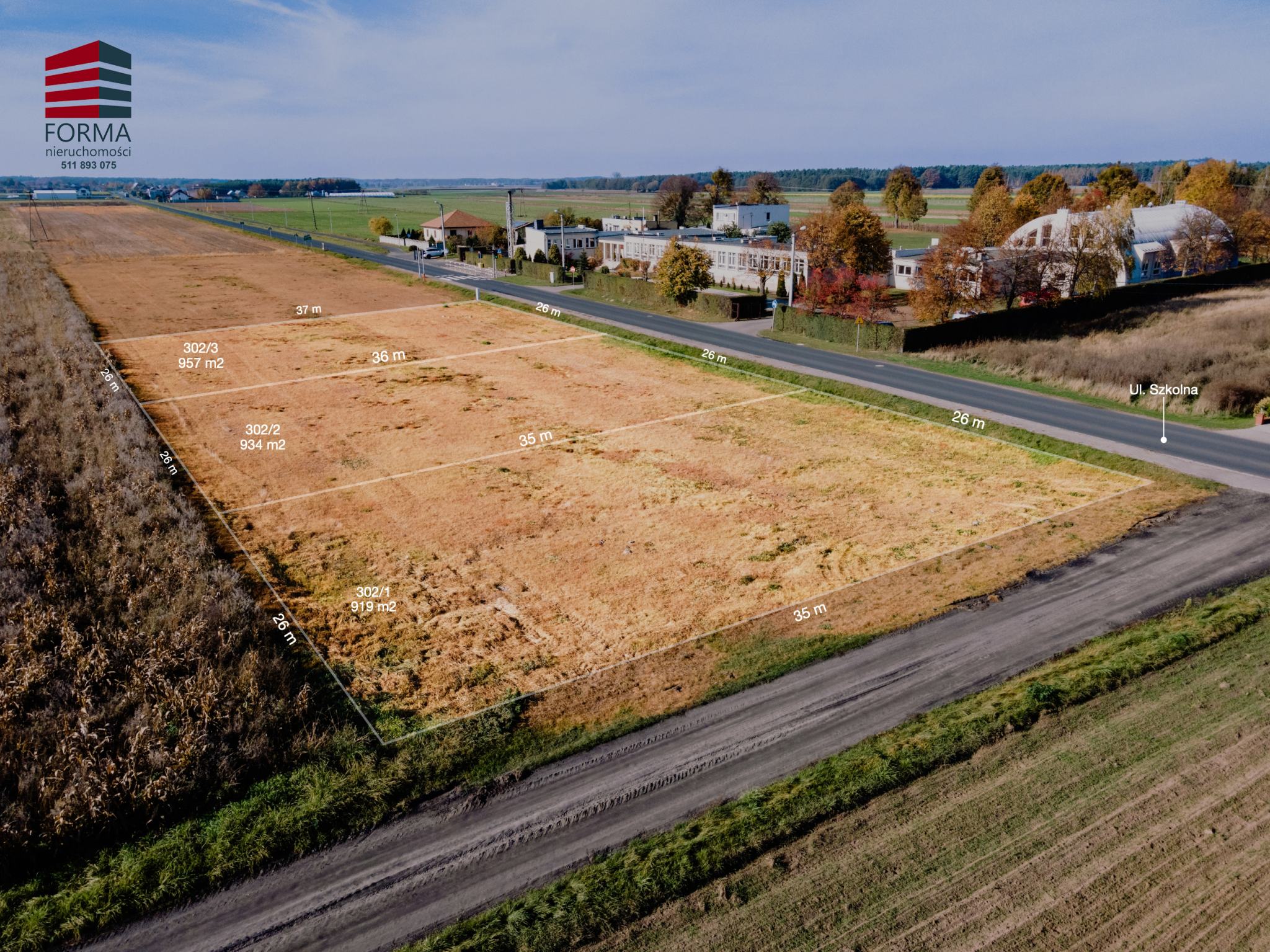 Działki posiadają bezpośredni dostęp do drogi publiczne/gminnej ul. Szkolna.