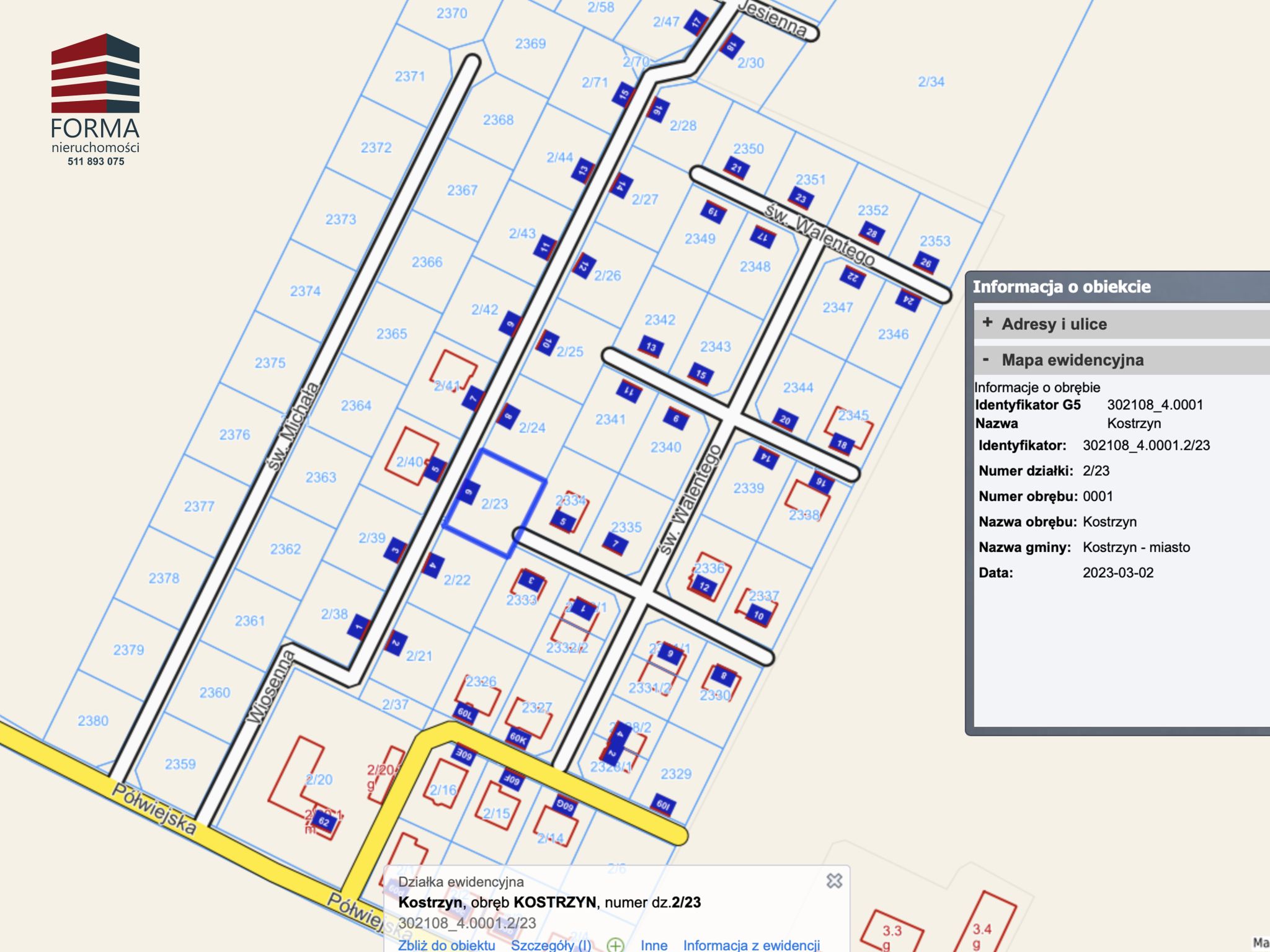 Oferta obejmuję działkę nr 2/23 o pow. 689 m2