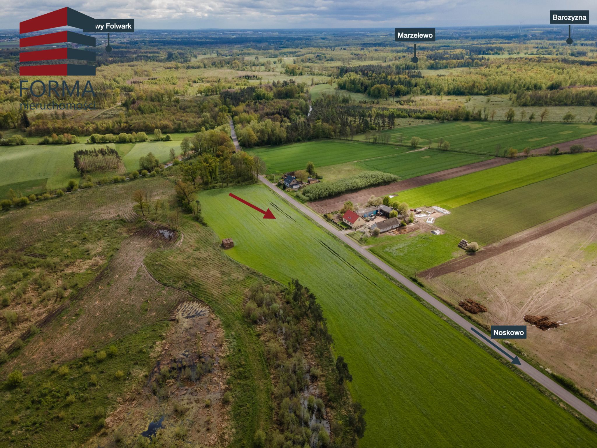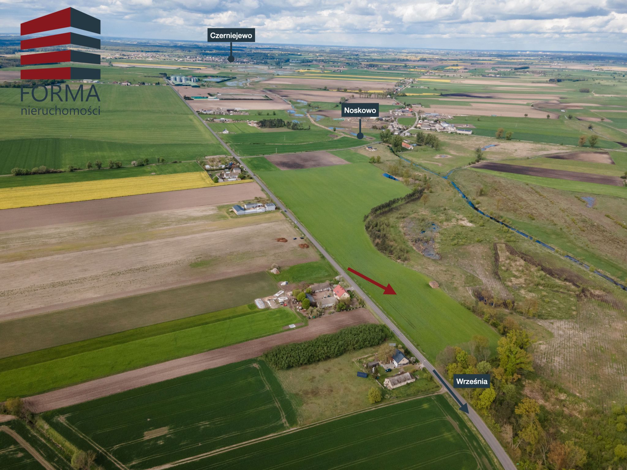 Polecam ofertę działek budowlanych o pow. 840 m2 i 1384 m2 które powstały z podziału większej działki w miejscowości Nowy Folwark obok miejscowość Noskowo, gmina Września.