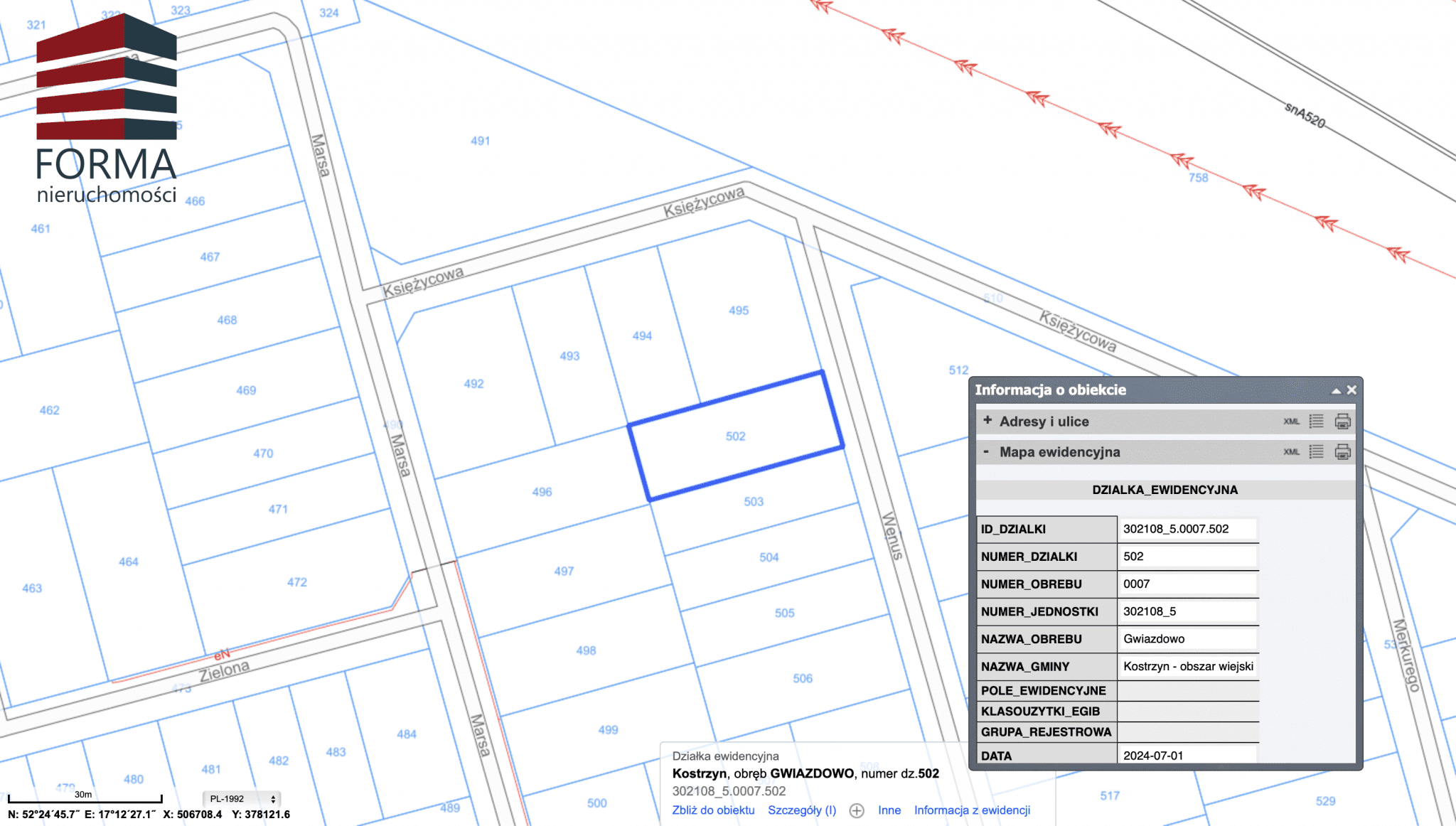 Działka o numerze geodezyjnym 502 leży na ternie 5MN