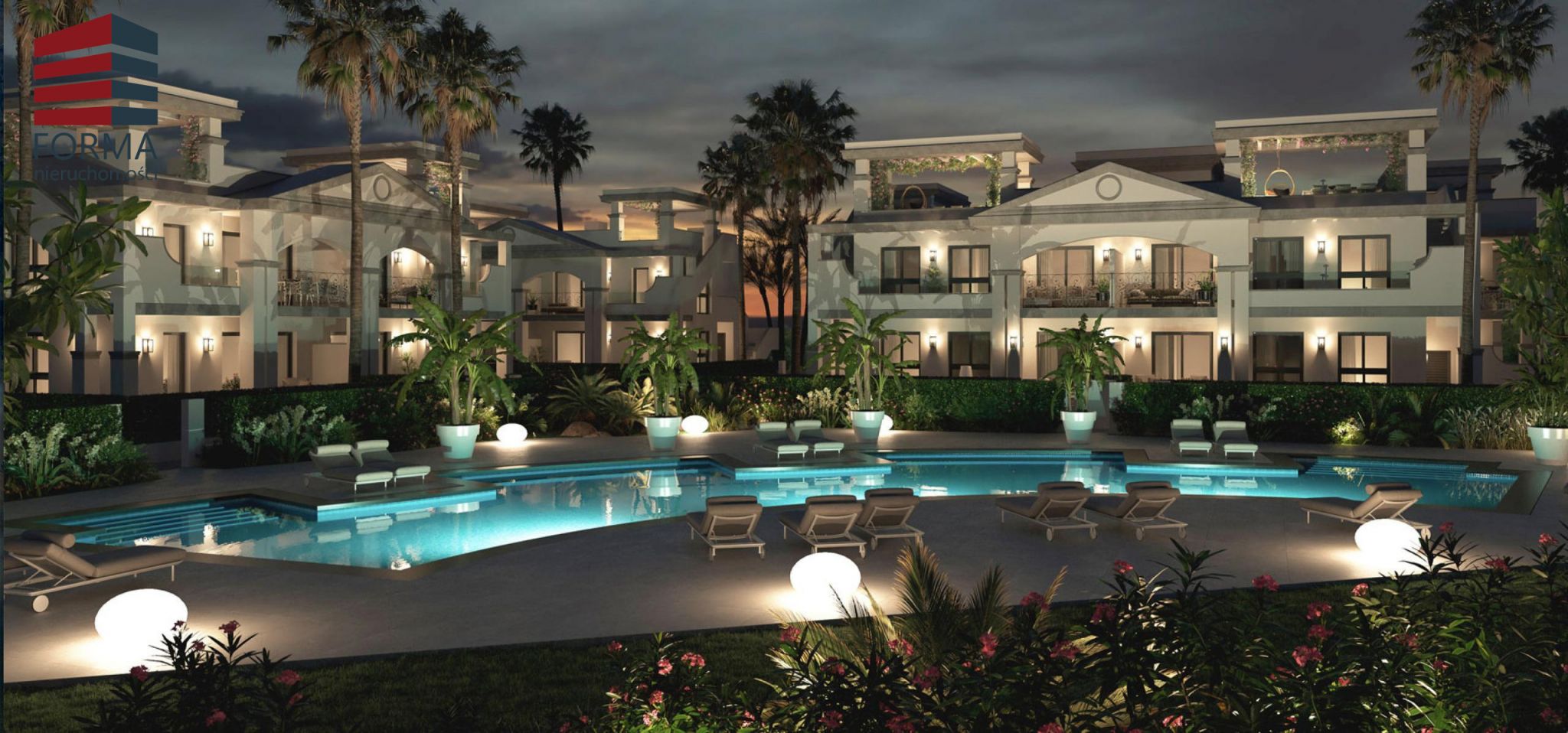 Apartamenty należą do zamkniętego osiedla z pięknymi terenami zielonymi i wspólnym basenem.