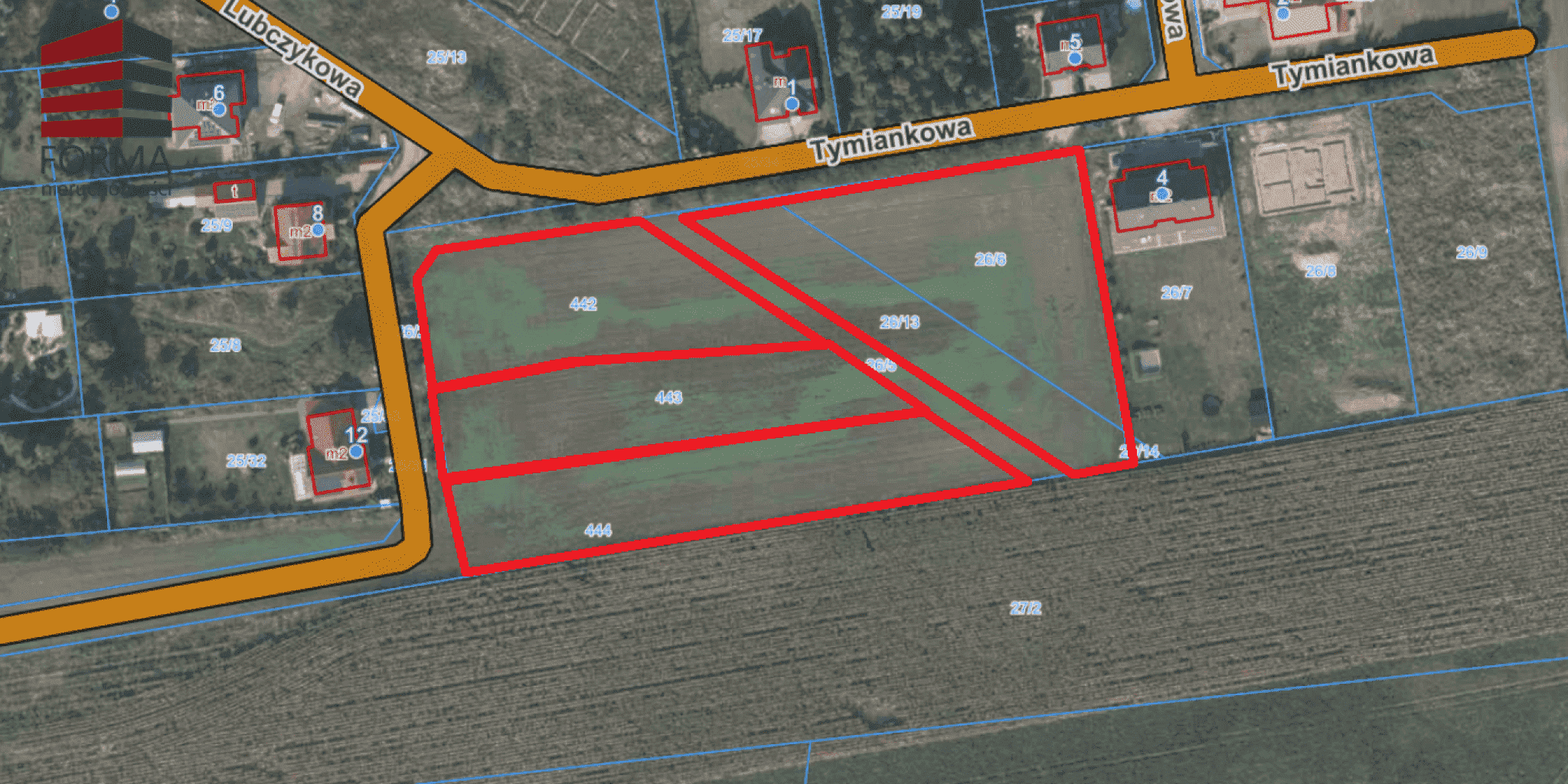 Polecam do sprzedaży atrakcyjne działki położone przy ulicy Tymiankowej w podpoznańskim Jasinie. Nieruchomość jest na terenie objętym miejscowym planem zagospodarowania przestrzennego pod zabudowę jednorodzinną. Część terenu nie podlega jednak zabudowie z powodu gazociągu przebiegającego w pobliżu (szczegóły – proszę o telefon).. Obok znajdują się budynki mieszkalne, zabudowa jednorodzinna
